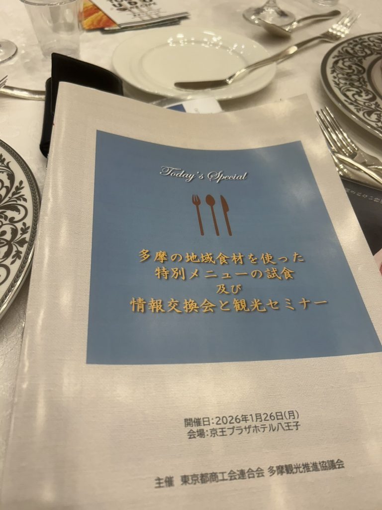 まちと農業研究所TOKYO(以下、まち農研)では、2026年1月26日に京王プラザホテル八王子で行われた東京都商工会連合会・多摩観光推進協議会主催の「多摩の地域食材を使った特別メニューの試食及び情報交換会と観光セミナー」において、多摩の地域食材のセレクト・集荷・配送で協力させていただきました。